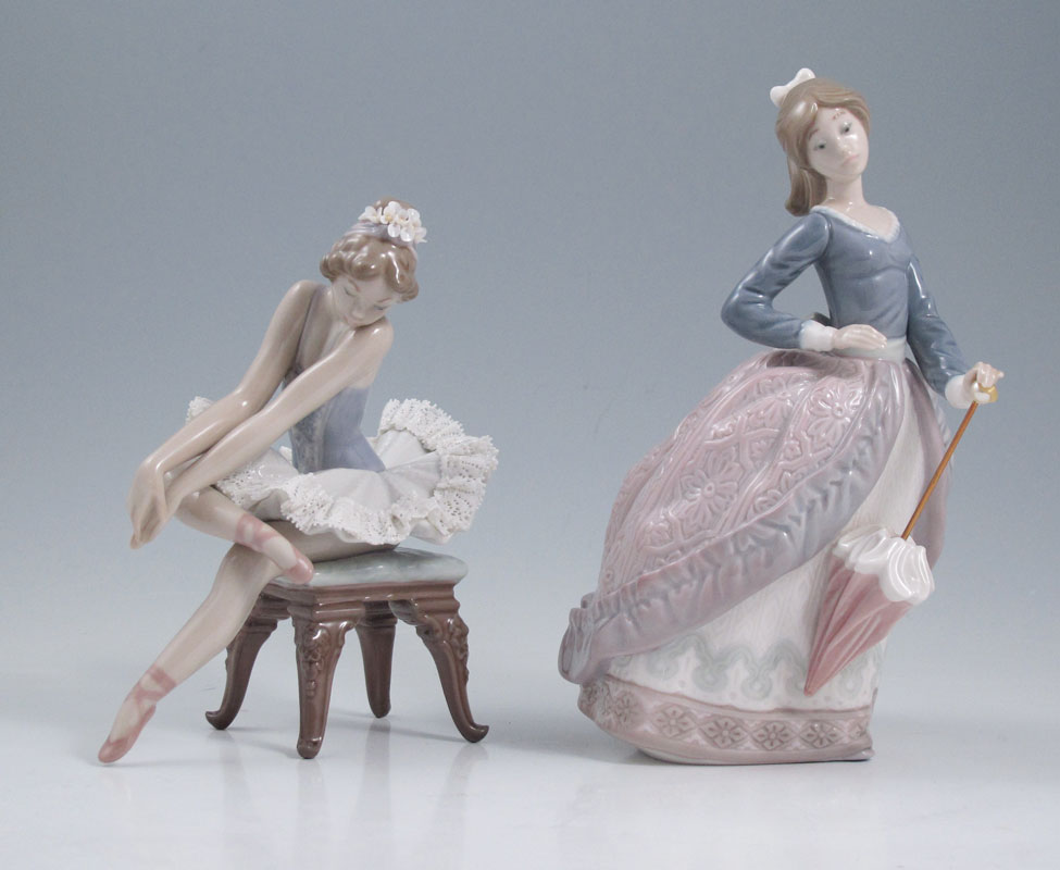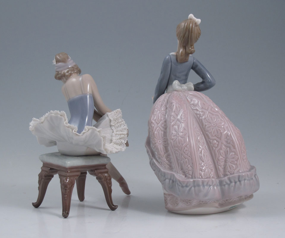 2 LLADRO GIRL FIGURINES: OPENING NIGHT, #5498, Salvador Debon, issued 1988, 5.5'' x 4.5''; EVITA, #5212, Jose Puche, issued 1984 retired 1998, 7''.