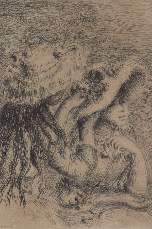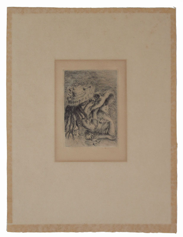 RENOIR, Pierre Auguste, (French, 1841-1919): ''Chapeau Epingle'', Etching, impression size 4 3/4'' x 3 3/8'', 13 1/8'' x 10'' with margins, signed in plate, framed, 14'' x 12''.