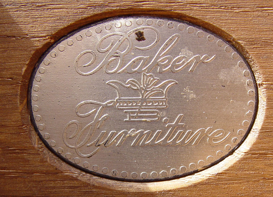 BAKER FURNITURE NEOCLASSICAL STYLE DESK AND FILE CABINET: Executive size desk with black columnar stiles, Desk measures 30'' tall x 72'' x 36''. The file cabinet measures 24'' tall x 23'' x 27''.