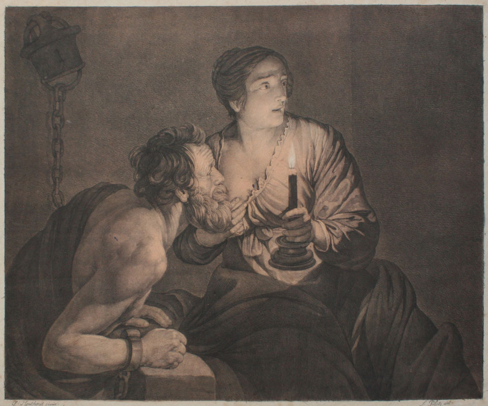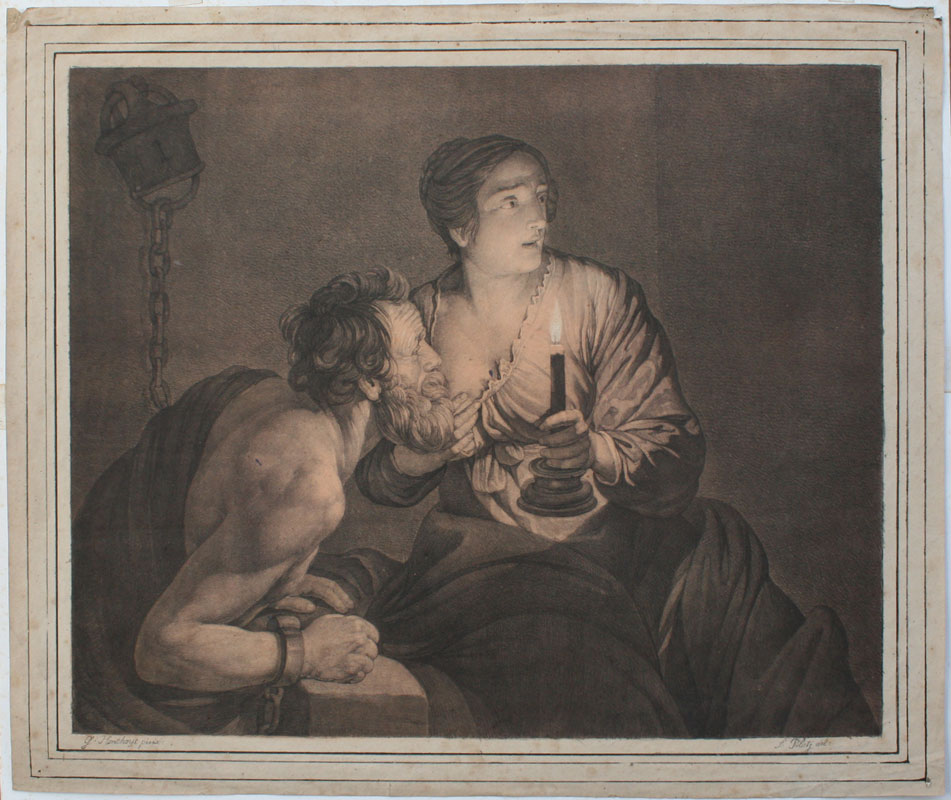PILOTY, Ferdidnand, (): ''Roman Charity: Cimon and Pero'', Lithograph, 17 1/4'' x 20 1/2'', after a painting by Honthorst, unframed.