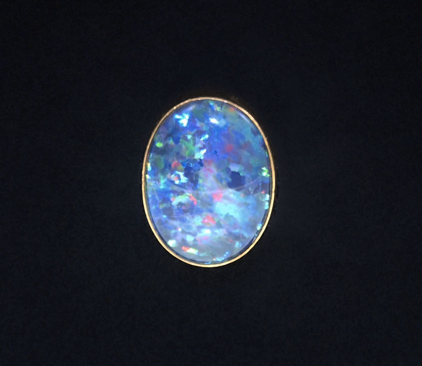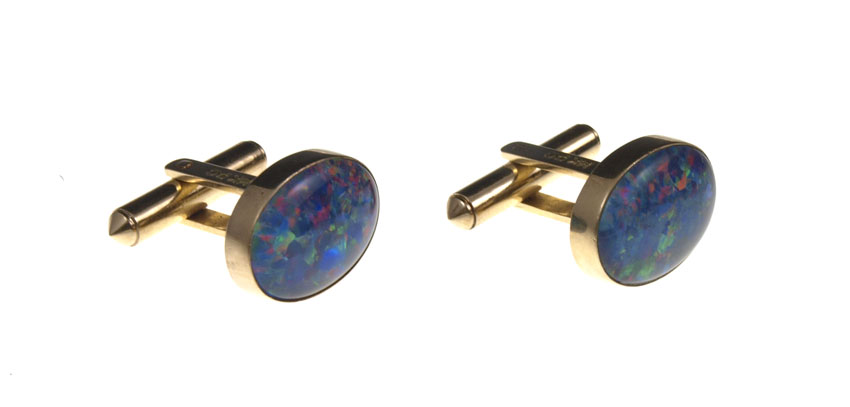 14K OPAL CUFFLINKS: 14K yellow gold cufflinks with 16.00 x 12.00 mm opal triplets. Weight: 9.5 grams.