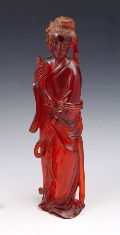 CHERRY AMBER FIGURE OF QUAN YIN: 11'' tall.