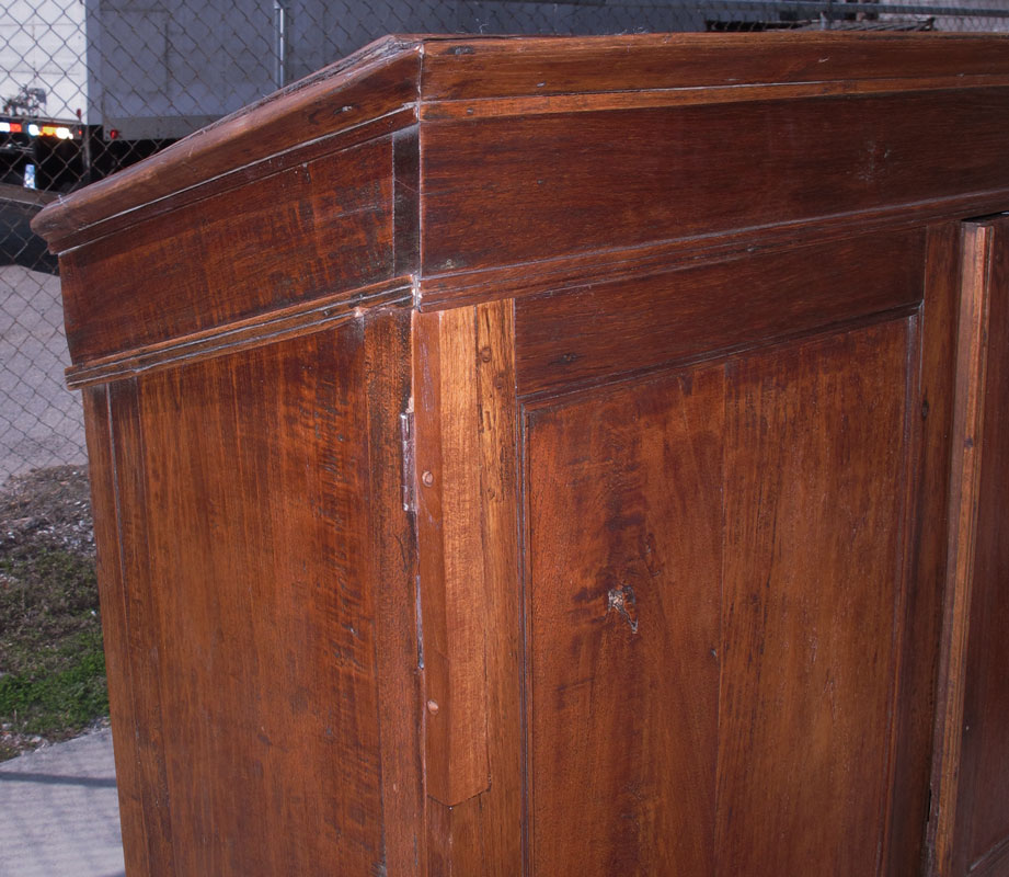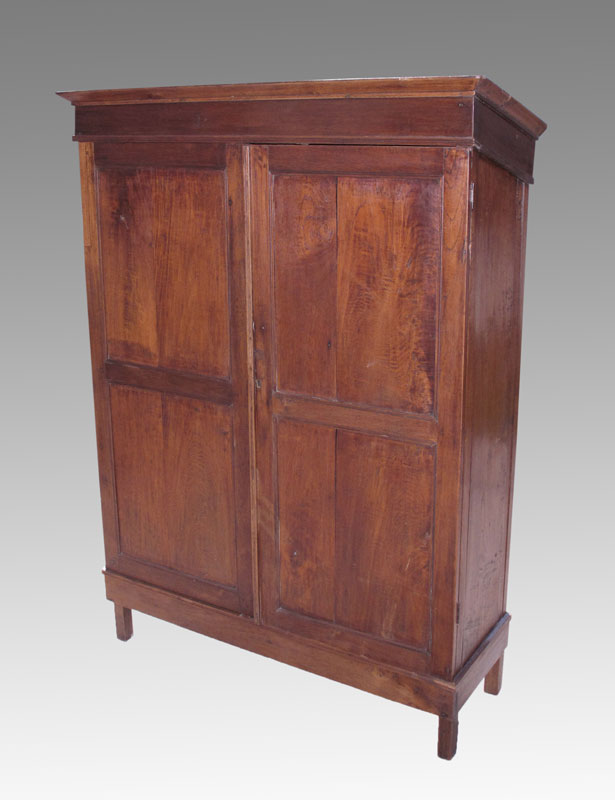 2 DOOR AMERICAN COUNTRY CUPBOARD: With unusual sloped top. 61 1/2'' h. x 44 1/2'' x 17''.