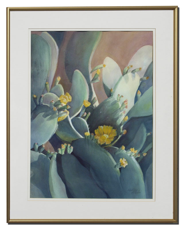 BURLIN, Patricia, (American, 20th Century): ''Blooming Cactus'', Watercolor, sight size 28'' x 20'', signed lower right, labeled verso with title, framed, 36'' x 28''.