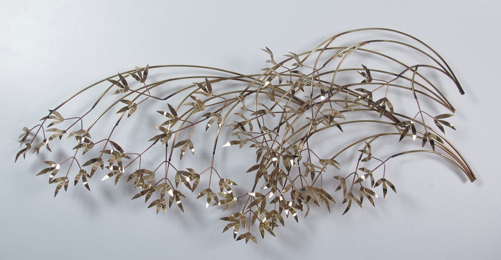 C. JERE METAL WALL ART SCULPTURE WITH FOLIATE MOTIF: 45'' x 20'', signed and dated 1984.