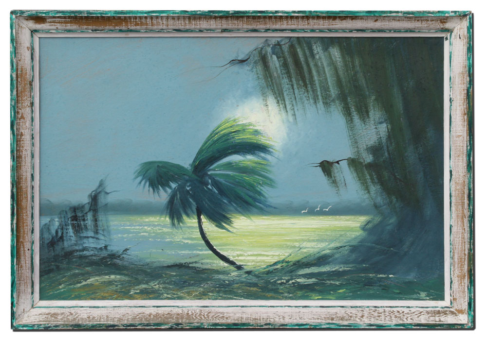 HAIR, Alfred, (American, 1941-1971): Florida Highwaymen Moonlit River with Palm, Oil/Upson, 24'' x 36'', original painted frame, 27'' x 39'', comes with authentication papers. Documentation included with attribution from Jim Fitch, recognized expert in the field.