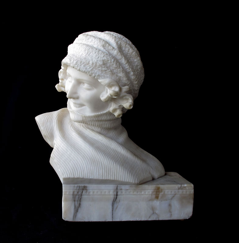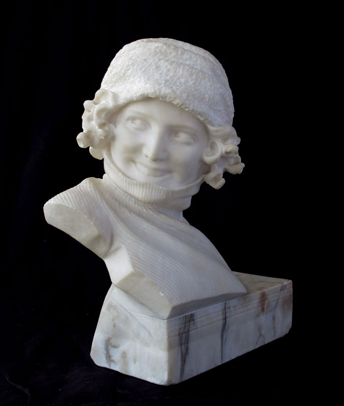 VITTI, Guisto, (Italian, 19/20th C.): Smiling Young Lass of the 20's, Alabaster & Marble sculpture, 13 1/2'' h x 12'' w x 5'' d, incised signature.
