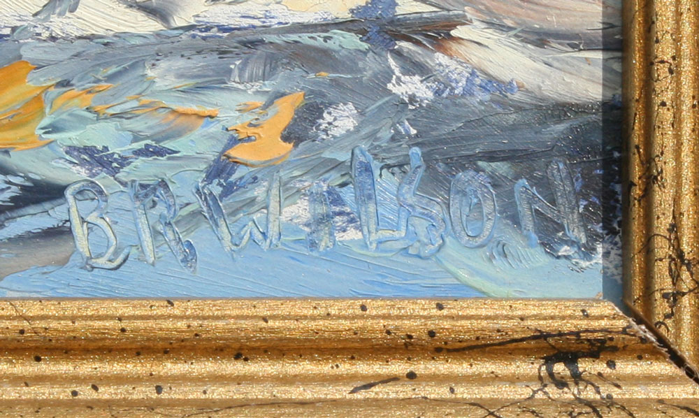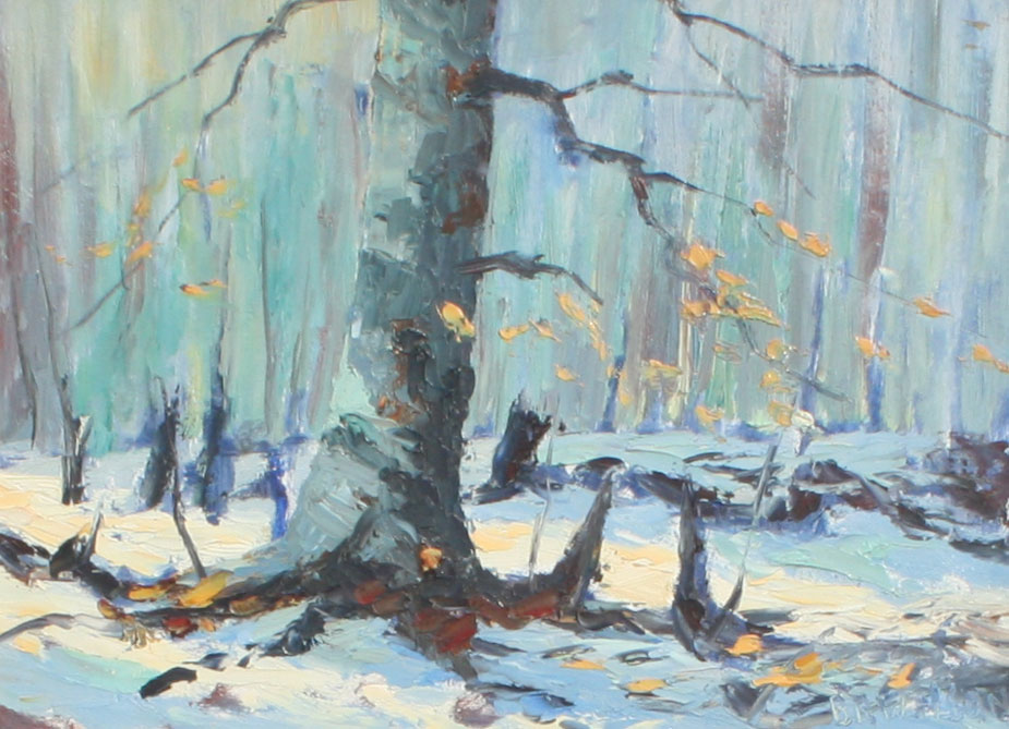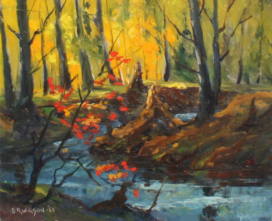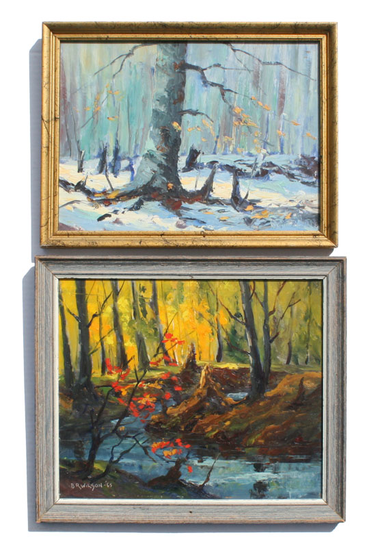 WILSON, Bertram Russell, (Canadian, 20th Century): 2 piece lot of Oils 1) Winter beach, Oil/Board, 9'' x 12'', signed lower right, titled verso, dated 1959, designation NSSA; 2) Woodland springtime, 9'' x 12'', signed lower left, dated 1965, titled and dated verso, framed, 11 1/2'' x 13 1/2. From the direct descendants of the artist.