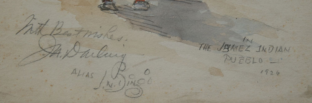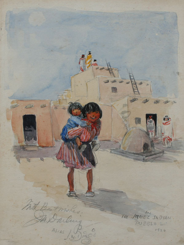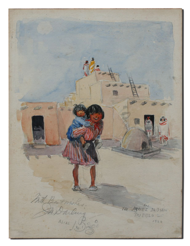 DARLING, Jay Norwood, (American, 1876-1942): ''In The Jemez Indian Pueblo'', Watercolor, 12 3/4'' x 9 3/4'', unframed, signed ''With Best Wishes, J.N. Darling, Alias Indigo'', signed lower right and dated 1926.