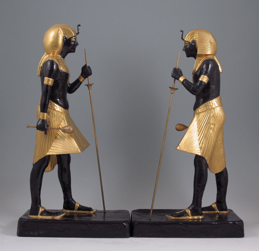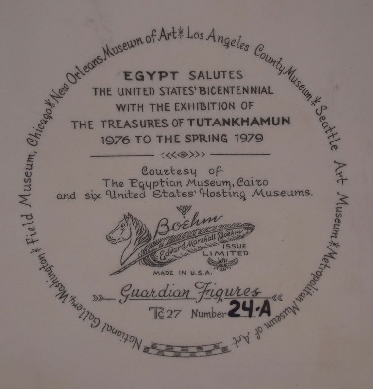 BOEHM PORCELAIN PAIR GUARDIAN FIGURES: From the Boehm Tutankamun Collection, TC 27 Guardian Figures, number 24A & 24B of 175. Retired 1980. 16'' h. x 8'' x 5''