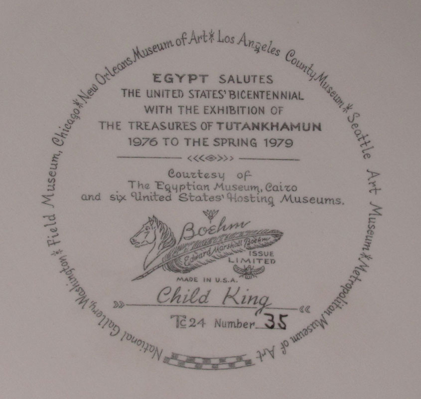 BOEHM PORCELAIN TUT CHILD KING FIGURE: From the Boehm Tutankamun Collection TC 24 ''Child King'', number 35 of 250. Retired 1980. 10 1/2'' h. x 5 1/2''.