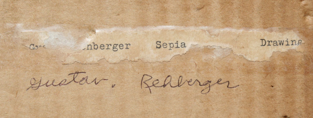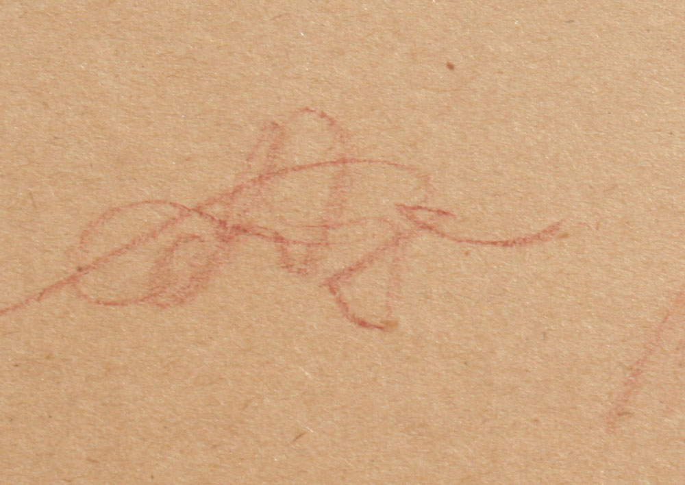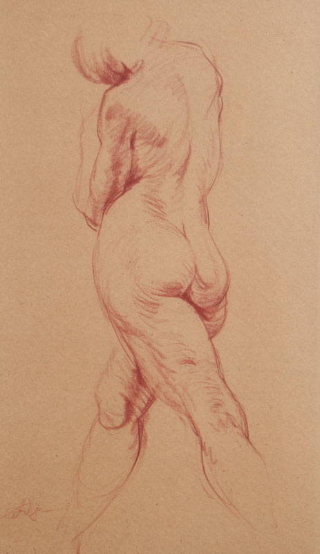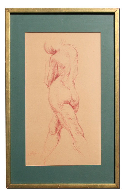 REHBERGER, Gustave, (Austrian, 1910-1995): Nude study, Sanguine, sight size 20'' x 12'', monogrammed lower left, old type written label verso, gilded frame with wear, 27 1/4'' x 18 1/4''.