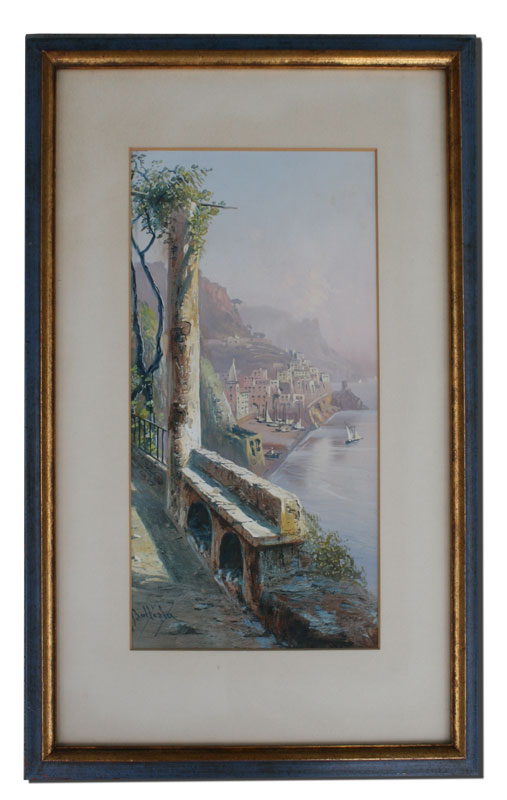 BATTISTA, Giovanni, (Italian, 1858-1925): Italian Coastal View of Sorrento?, Gouache, sight size 14'' x 7 1/2'', signed lower left, framed, 21'' x 14''.