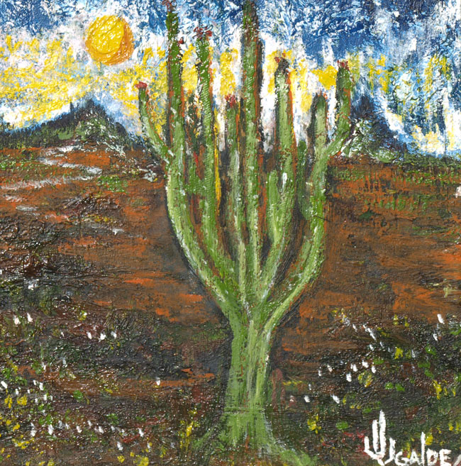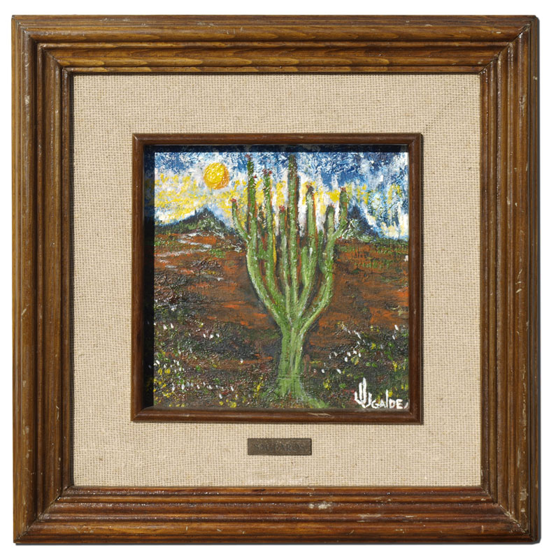 UGALDE, Juan, (Mexico, 1958-): ''Saquaros'', OIL/Masonite, 7 1/2'' x 13'', signed, framed, 12'' x 18''.