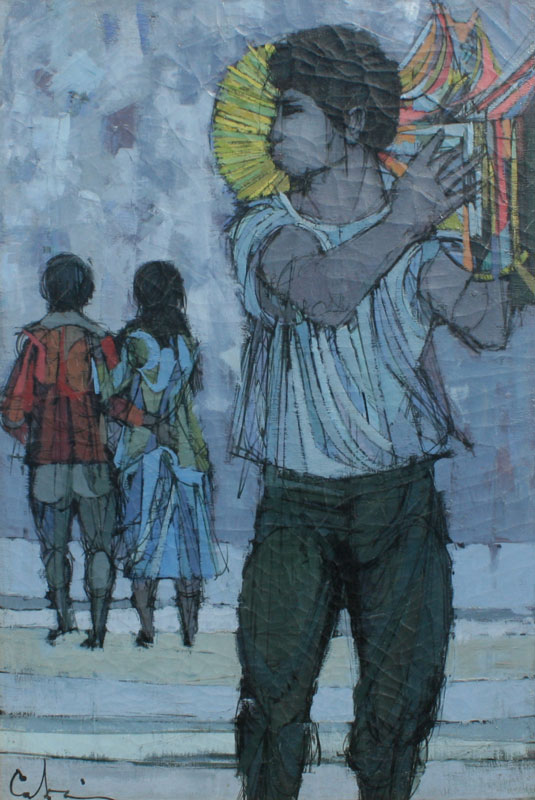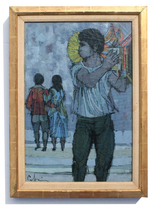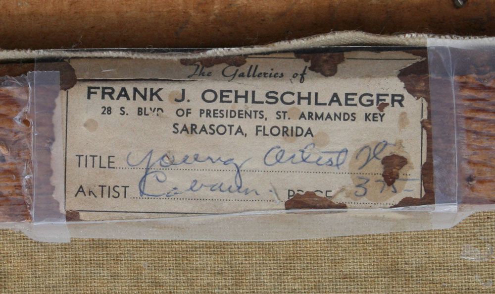 CABINESS, Larry, (American, 20th Century): ''The Artist'', Oil/Canvas, 19 3/4'' x 13 3/4, signed, Frank J. Oehlschlaeger Gallery label verso, fine gilded frame with wear, 23'' x 17''.