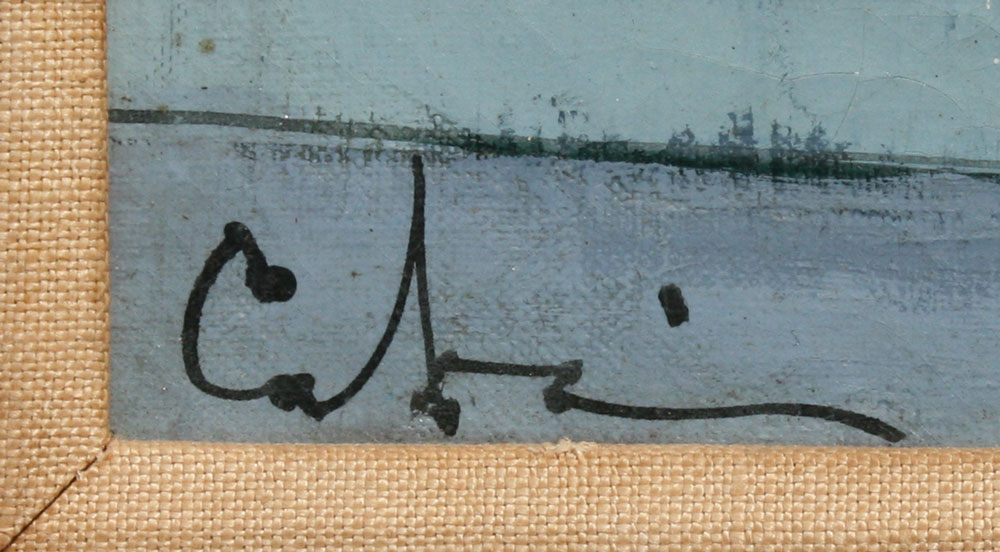 CONDITION: Cracklure throughout, several minor touch of inpaint, some paint fleck in the upper portion of the painting.