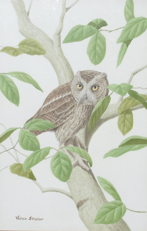 STIELER, Valan, (American, 20th Century): ''Screech Owl'', Watercolor, sight size, 20'' x 14'', signed, framed, 32'' x 26''.