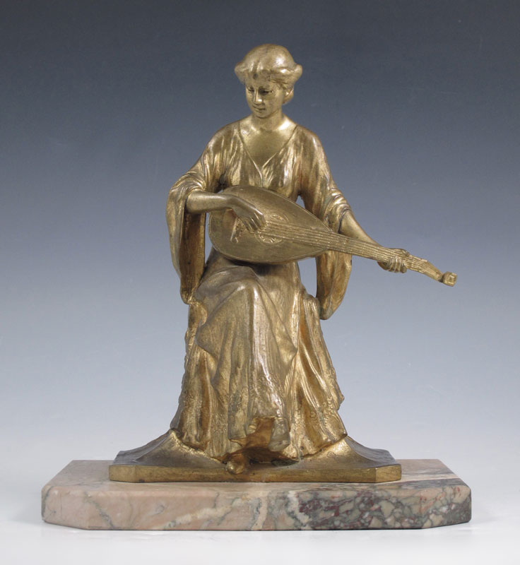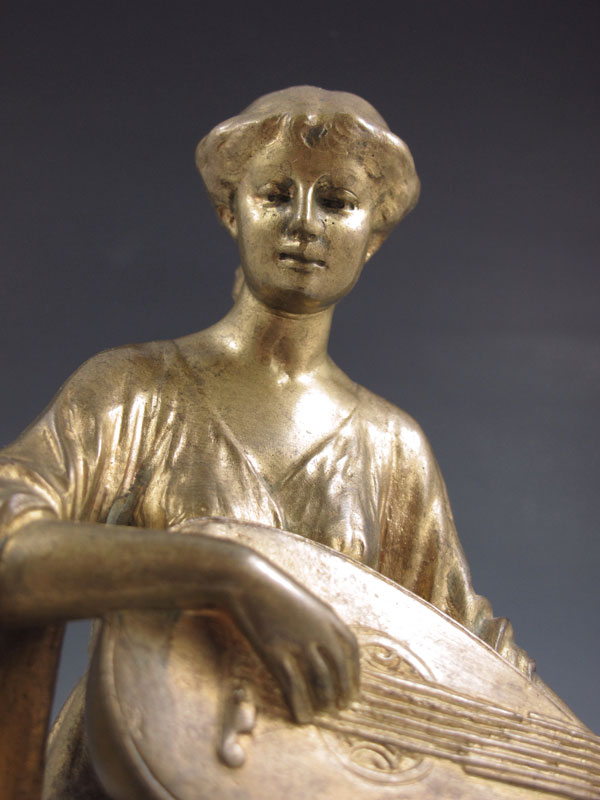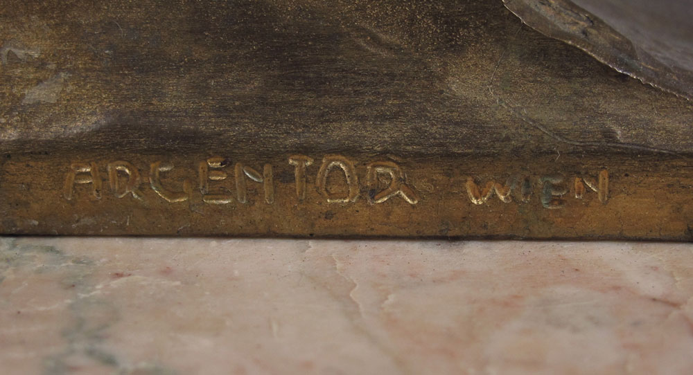 BRONZE MANDOLIN PLAYER SIGNED ARGENTOR-WIEN: 8 1/2'' h., affixed to marble plinth, 8'' w, 5'' d.
