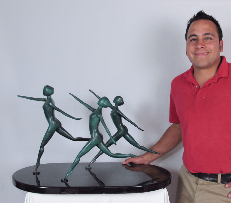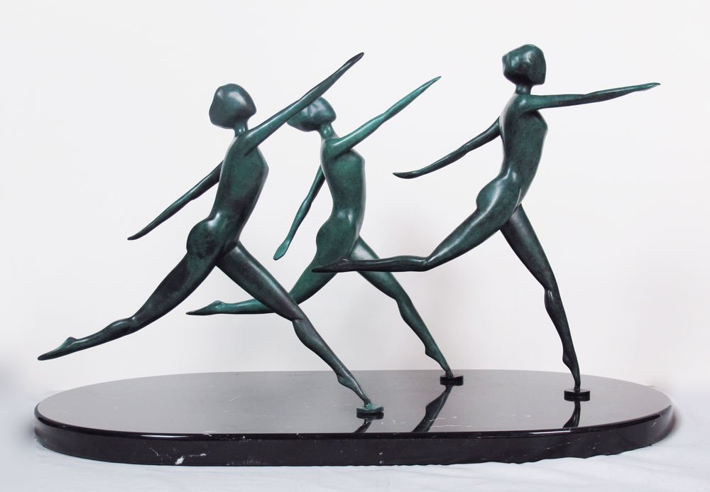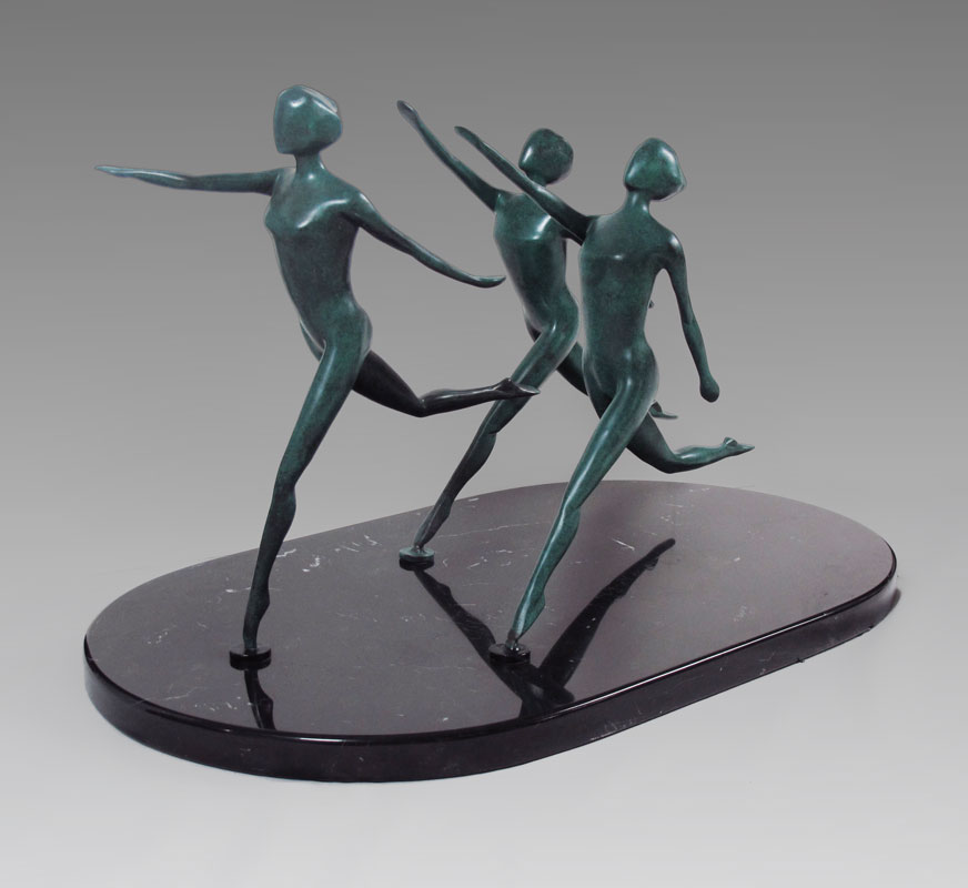 LLOYD, Tom, (American, 20th C.): 3 Muses, dancing female figures, Patinated Bronze, 16 1/2'' h, each individual figure is affixed to polished marble plinth, approximately 28'' l x 18'' d, incised signature, numbered 3 of 75.