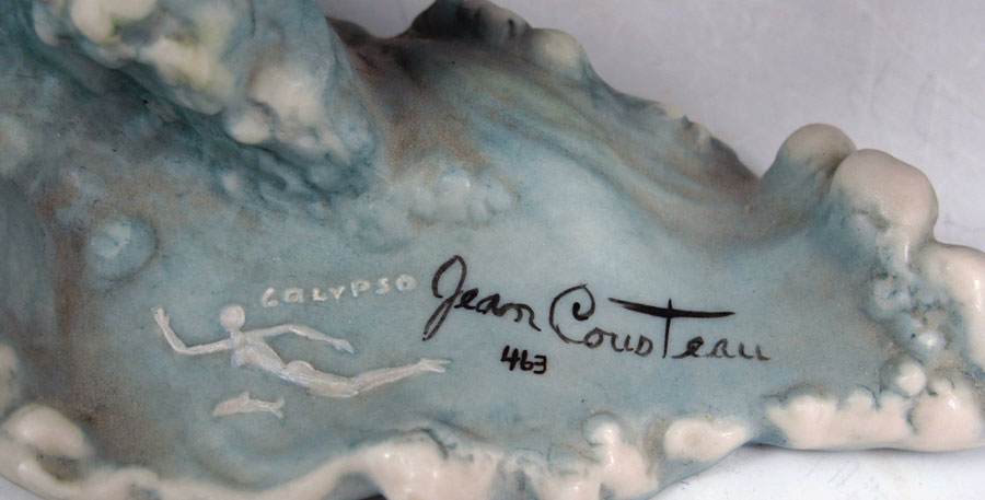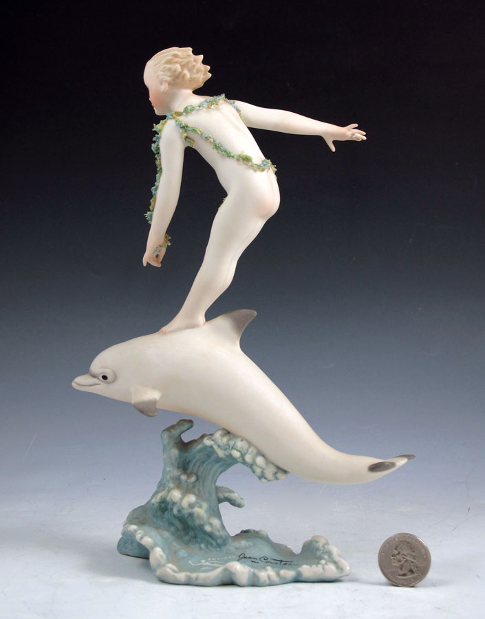 CYBIS PORCELAIN ''ARION THE DOLPHIN RIDER'': Signed by Jean Cousteau, #463, 10'' tall.
