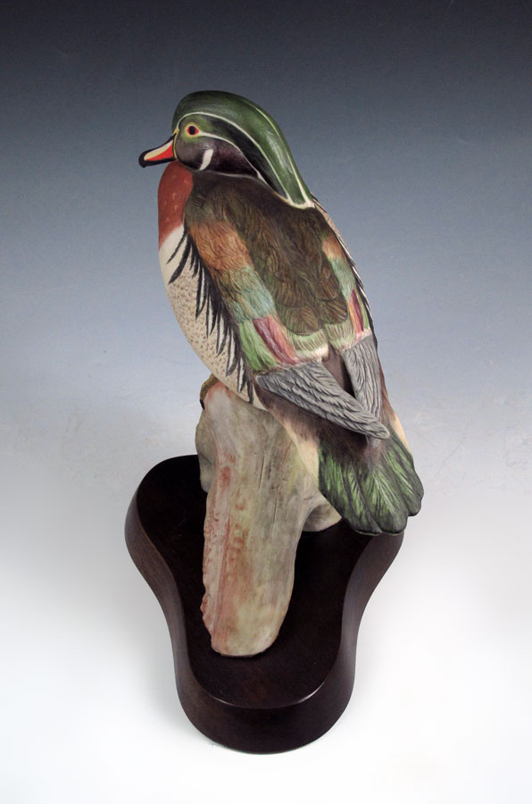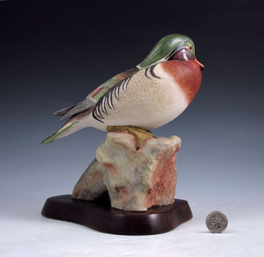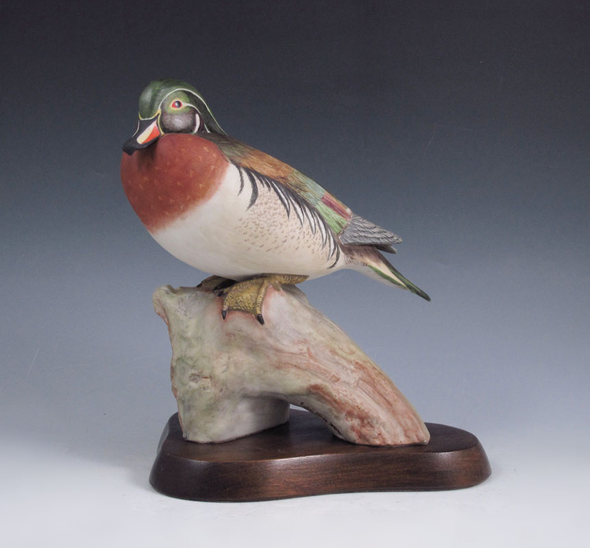 CYBIS WOOD DUCK: Limited edition #306 of 500, mounted on wood stand 9'' h. x 8'' x 5 1/2''