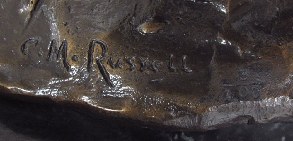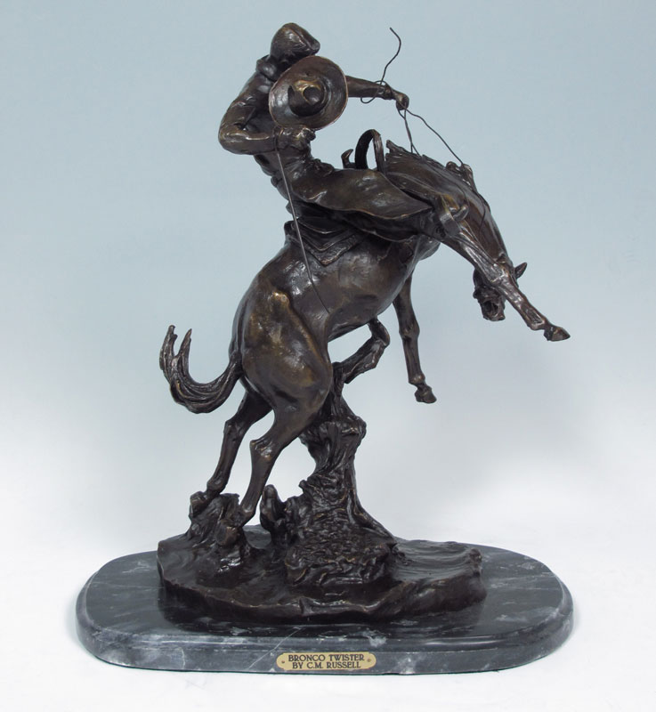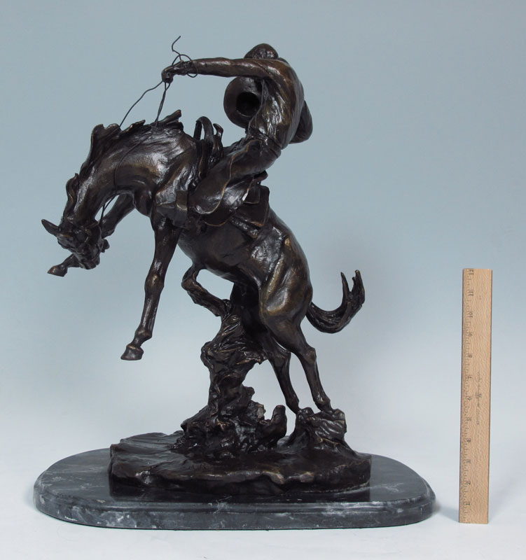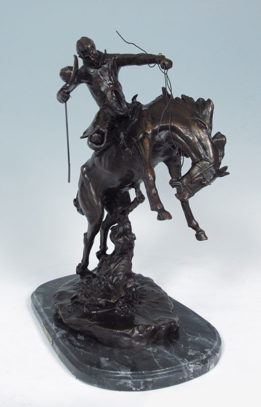 RUSSELL, Charles Marion (American 1864-1926): After Russell, ''Bronco Buster'', Bronze, on black marble base. 24'' h. x 20'' x 15''.