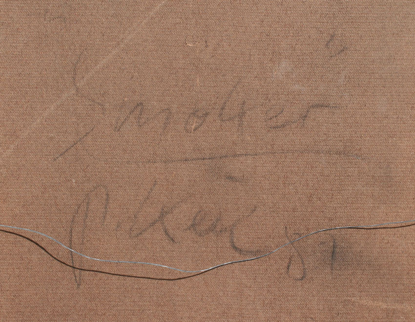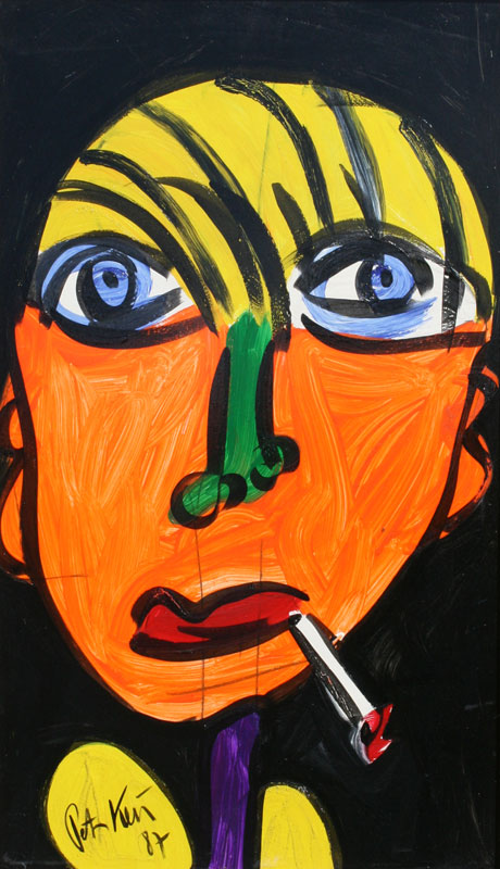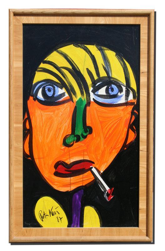KIEL, Peter, (German, 1942-): ''Smoker'', Oil/Masonite, 39 1/4'' x 23 1/2'', signed, dated 87, titled verso, signed and dated, framed, 44 1/2'' x 28 1/2''.