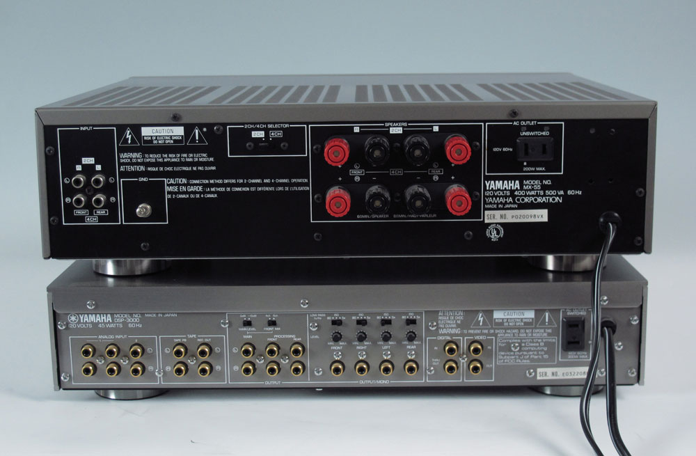 YAMAHA MX-55 AMPLIFIER & DSP-3000 PROCESSOR: To include 1) Yamaha MX-55 Natural Sound 2/4 Power Amplifier. 5'' h. x 17 1/4'' x 15''. 2) Yamaha DSP-3000 Natural Sound Field Processor, 3 3/4'' h. x 17 1/8'' x 13 3/4''.