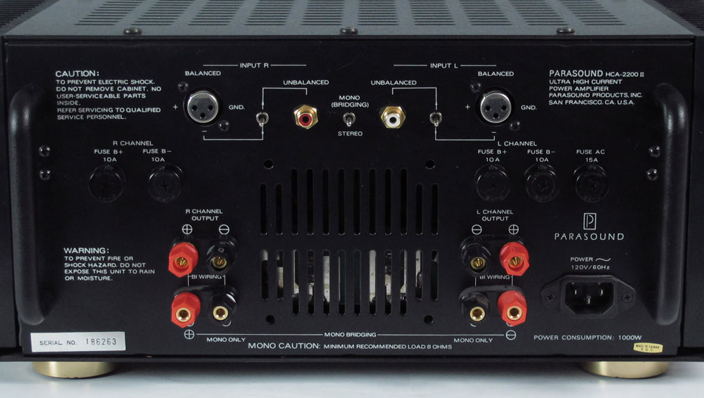 PARASOUND HCA-2200 II ULTRA HIGH CURRENT POWER AMPLIFIER: 7 1/2'' h. x 19'' x 16''.