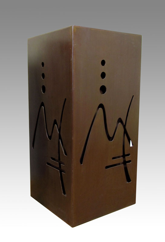 GREGORY HAWTHORNE ACID ETCHED STEEL LIGHTED PEDESTAL: 42'' h x 20'' w x 20'' d.