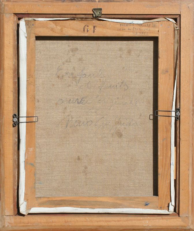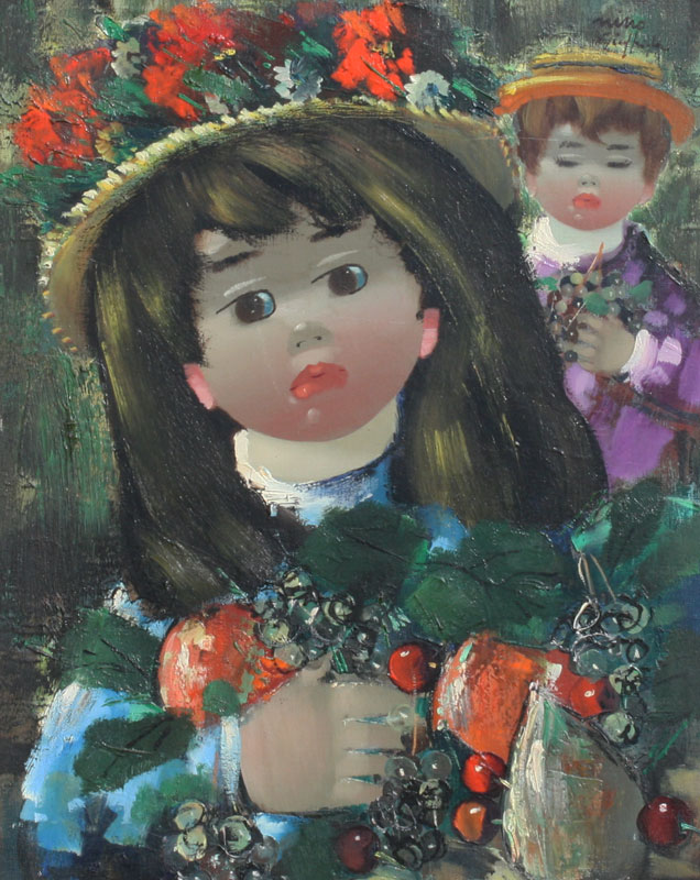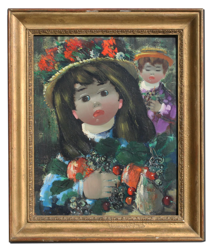 GIUFFRIDA, Nino, (Italian, 1924-): ''Enfants et Fruits'', Big Eyed Girl, Oil/Canvas, 16'' x 13'', signed titled verso, framed with wear, 20'' x 17''.