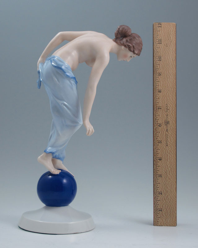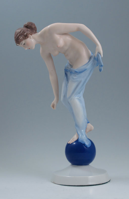 ROSENTHAL PORCELAIN NUDE FIGURE: Designed by Ernst Wenck. Gracefully draped in blue, 12''h, 6 1/2'' at the widest