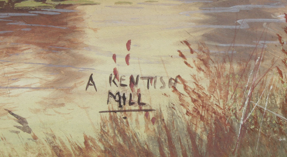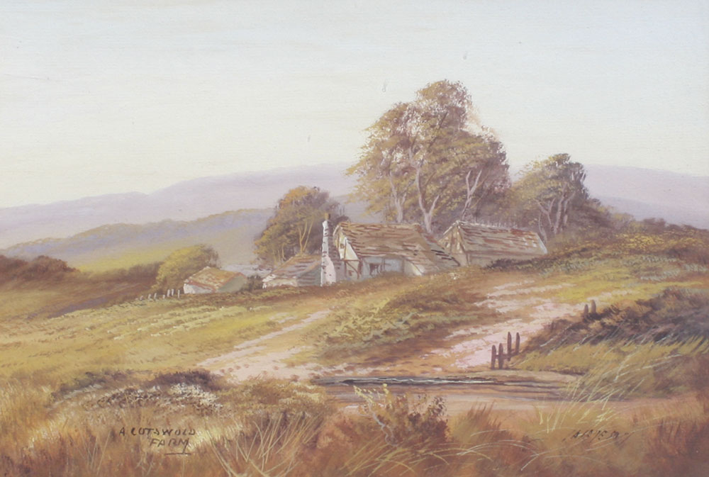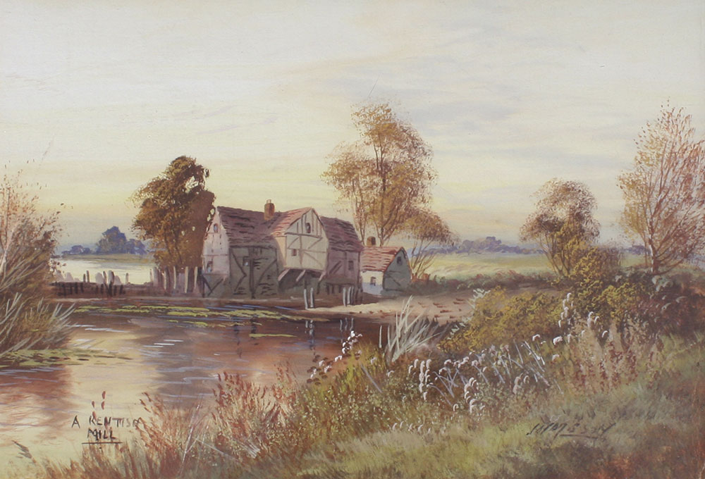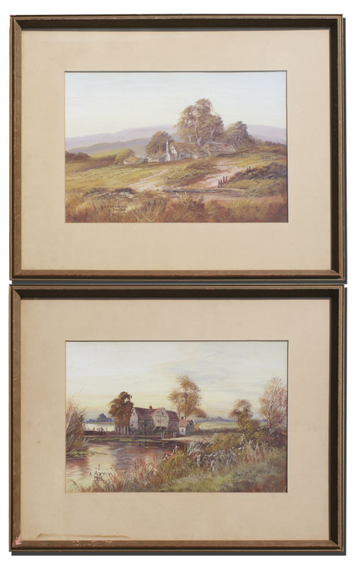 2 PIECE LOT OF GOUACHE LANDSCAPES SIGNED JAMESON: To include 1) ''A Kentish Mill'', sight size 10'' x 15'', signed lower right, titled lower left, framed, 17 1/2'' x 22 1/2''; 2) ''A Cotswold Farm'', sight size 10'' x 15'', signed lower right, titled lower left, framed, 18'' x 22 1/2''.