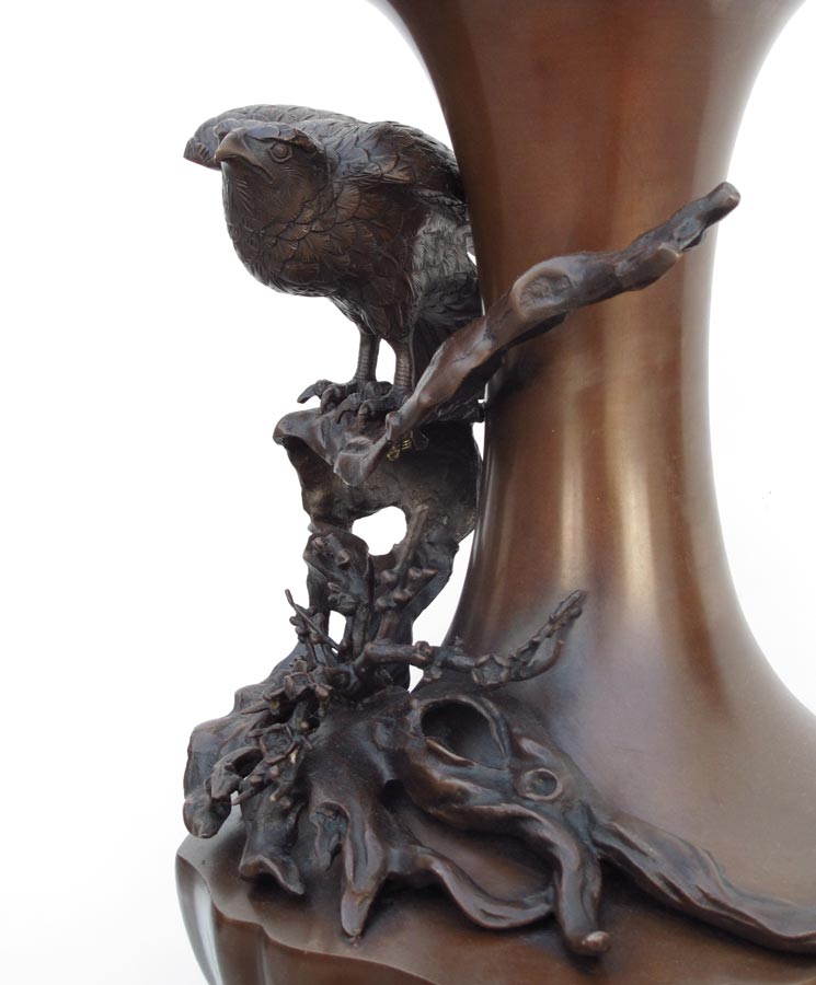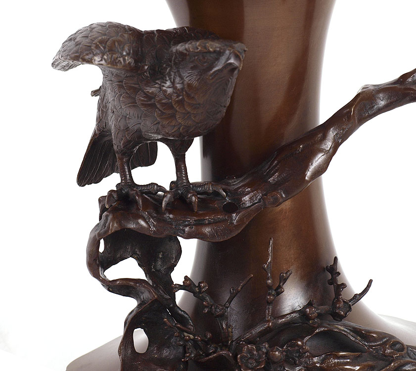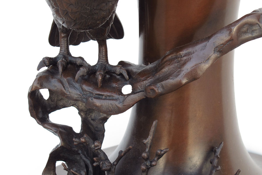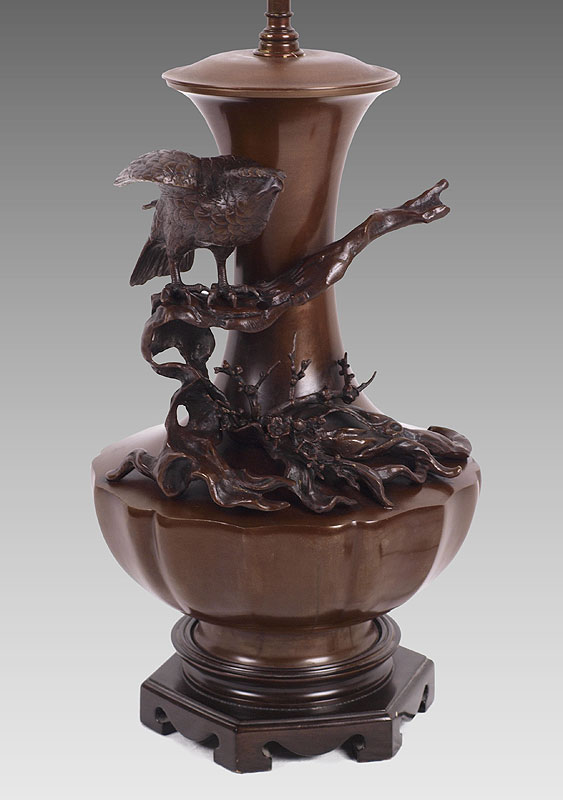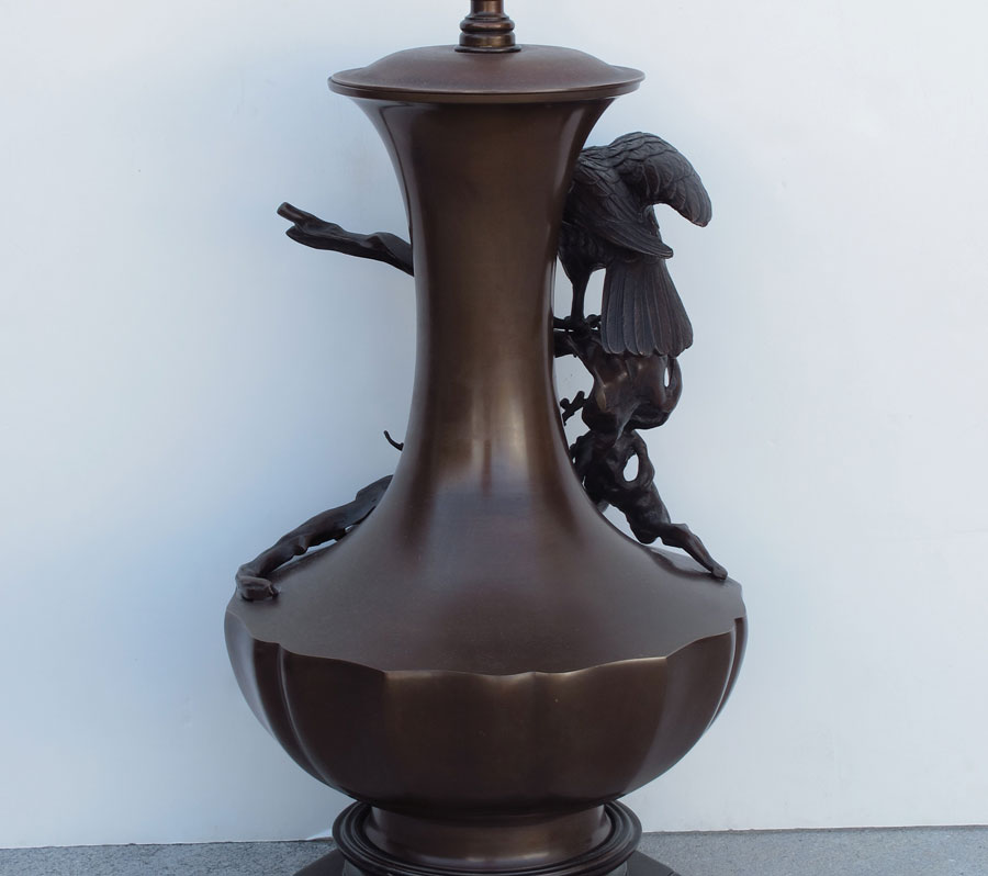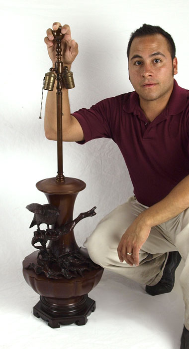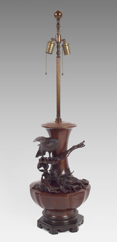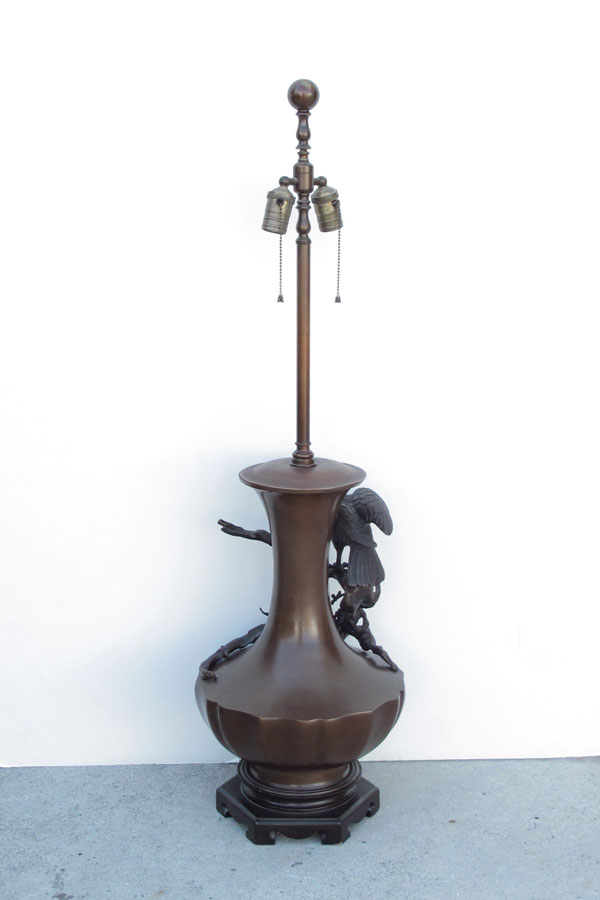HIGHLY DETAILED JAPANESE BRONZE LAMP: 42'' tall Overall. 12'' dia. at the widest, the bronze itself is approx. 19''h.