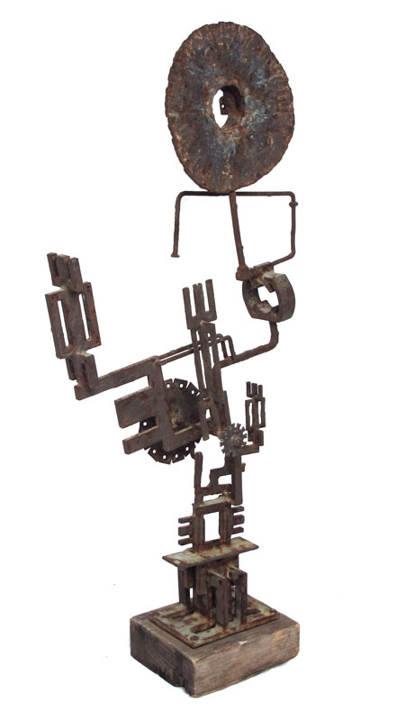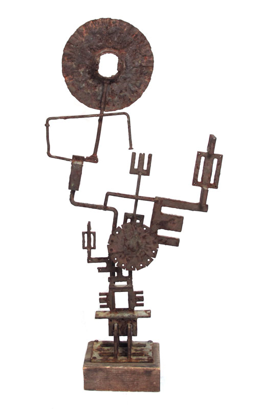 MARCO, Paul, (American, 20th C.): Abstract Iron Sculpture, 36'' h., affixed to wood plinth, 39'' overall, unsigned.