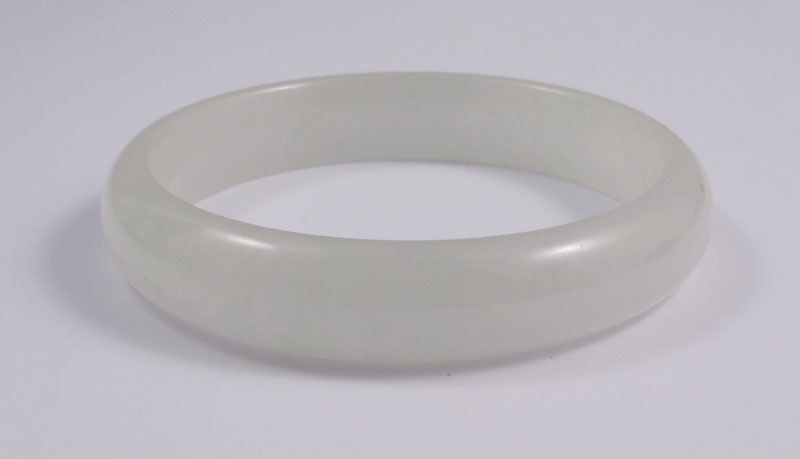 LIGHT GREEN JADEITE JADE BANGLE BRACELET: 2 1/4'' interior diameter.