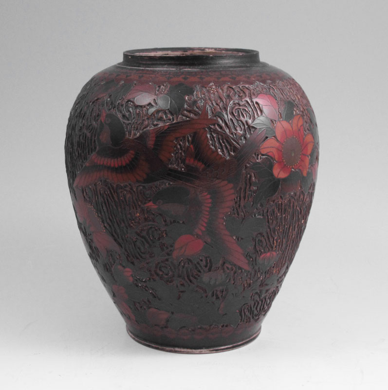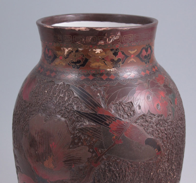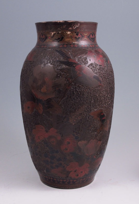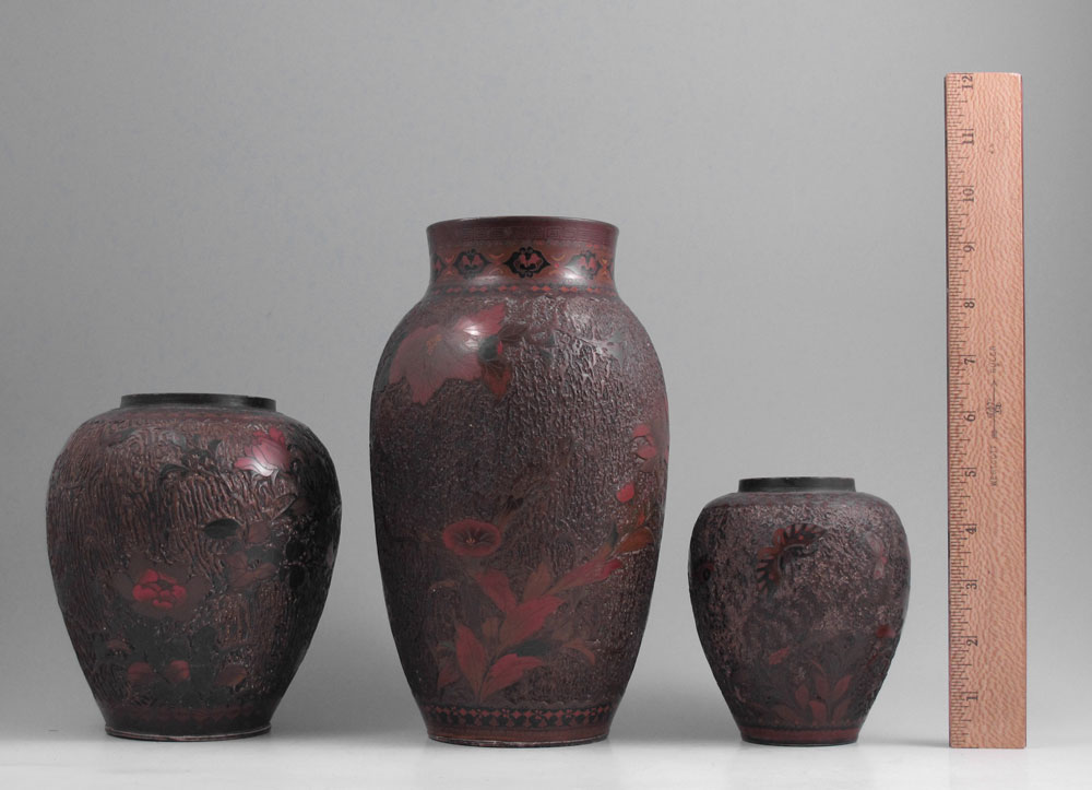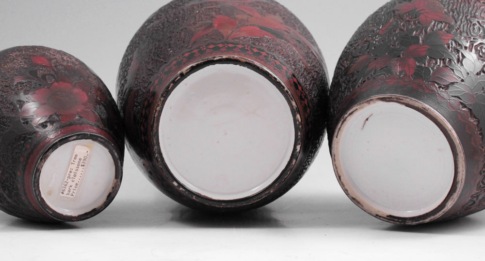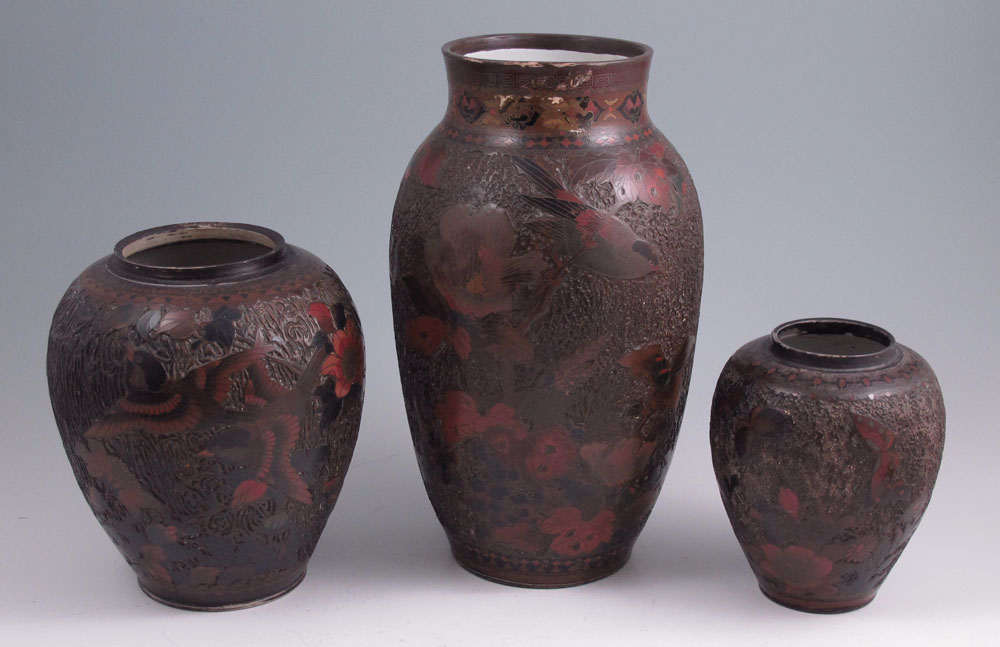 GROUP OF 3 JAPANESE TOTAI CLOISONNE VASES: Ceramic body cloisonnes, 3'', 6 1/2'' and 9 1/2''.