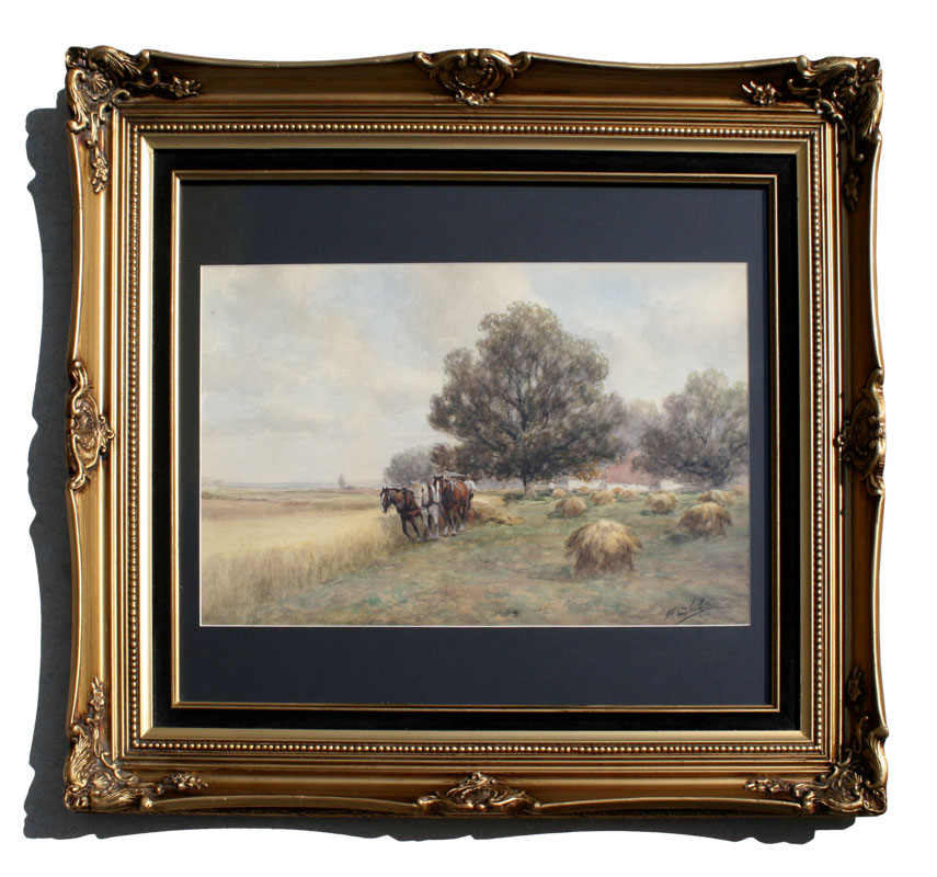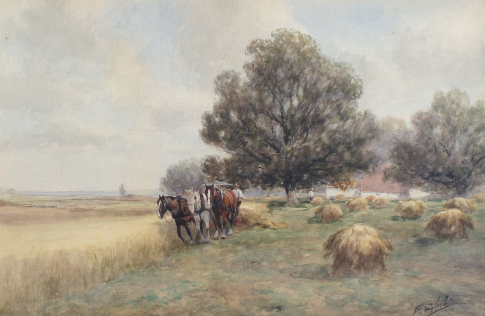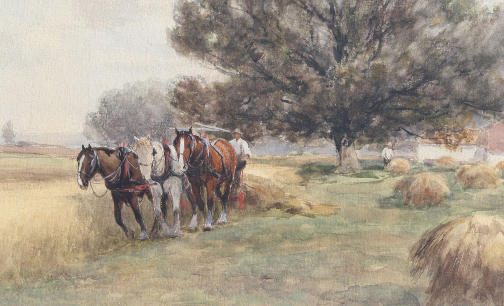 ENGLISH, Frank, (American, 1854-1922): Haying Scene Depicting a Three Horse Team, site size 13 1/2'' x 21 1/2'', signed lower right, encased in newer gilded frame, 28'' x 32''.