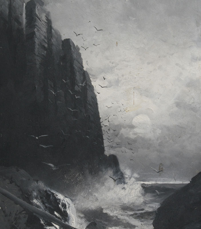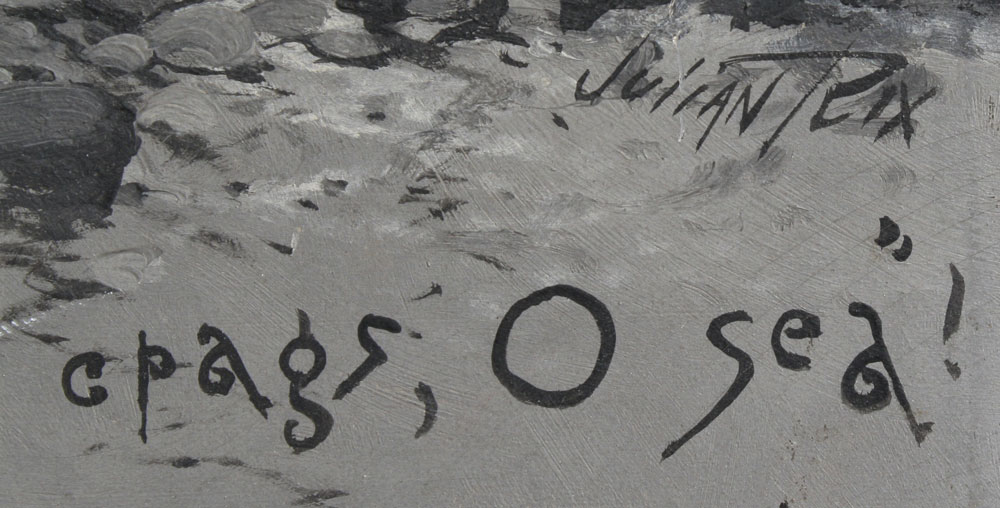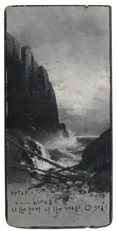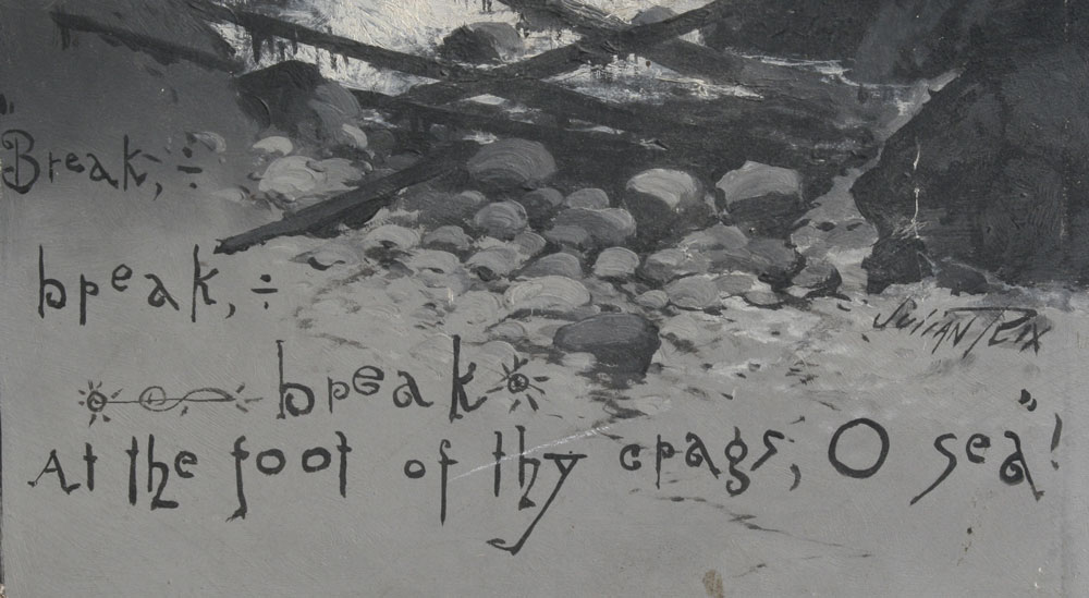 RIX, Julian, (American, 1850-1903): ''Break, Break, Break at the Foot of Thy Crags, Oh Sea!'', Oil/Board, 18 3/8'' x 8 3/4'', signed lower right, unframed.