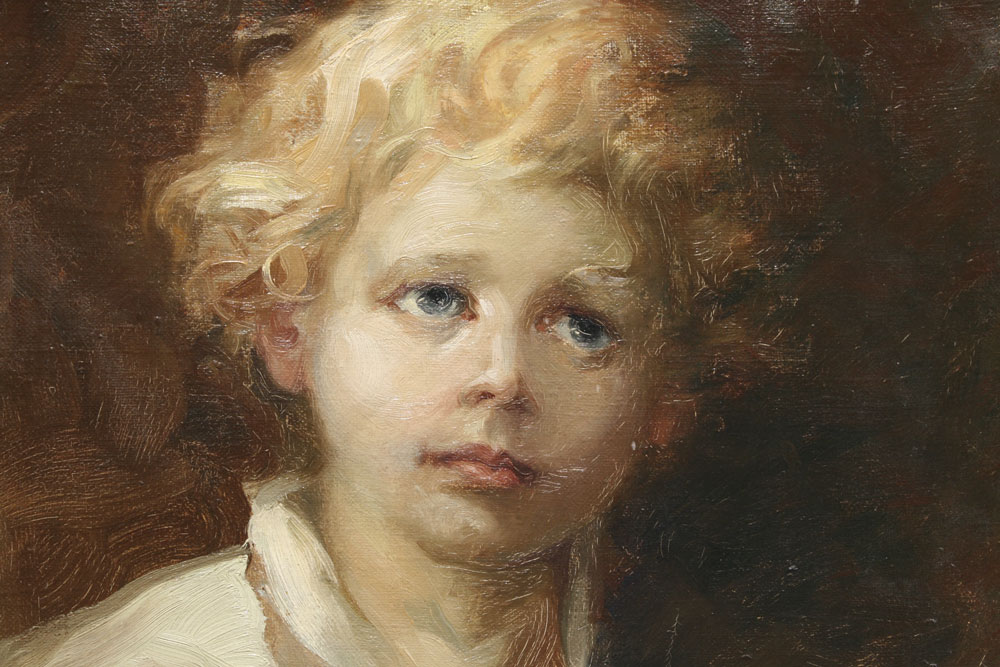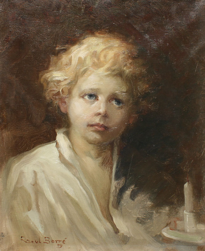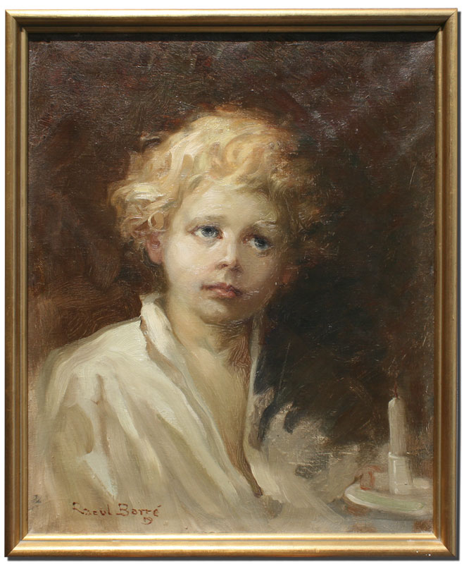 BARRE, Raoul, (Canadian, 1874-1932): Child With Chamber Stick, Oil/Canvas, 22'' x 18'', signed lower left, gilded frame, 23 1/2'' x 19 1/2''.