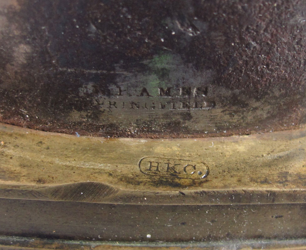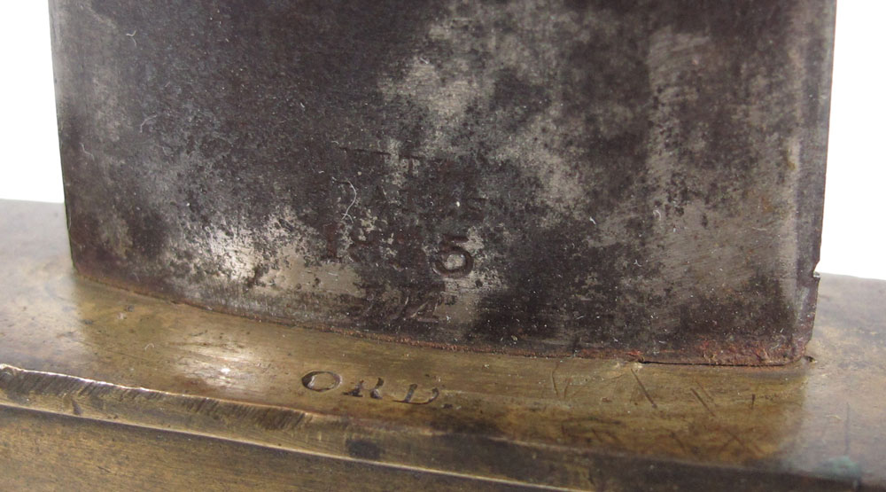 MODEL 1832 AMES FOOT ARTILLERY SWORD: 18 3/4'' blade marked NP Ames Springfield, United States 1835 with inspectors initials JM. All brass hilt stamped ORD and HKC inspector. 24 1/2'' overall.