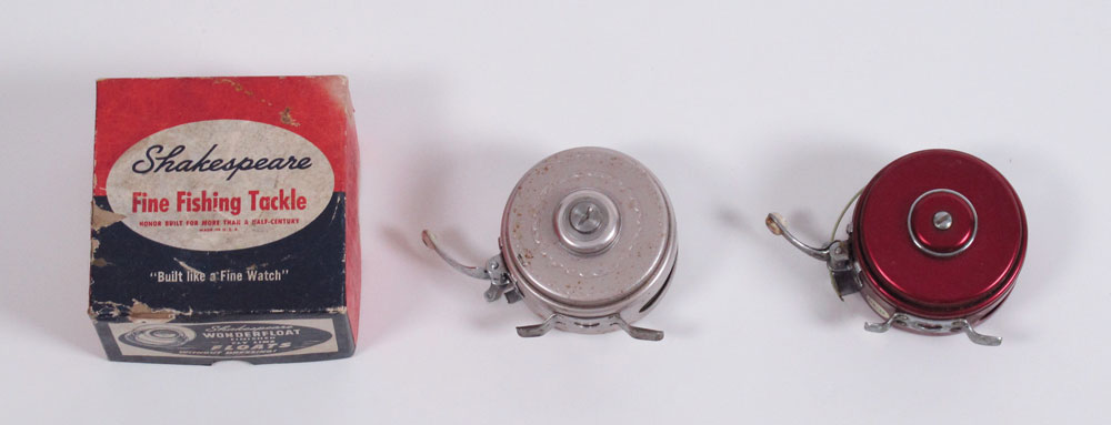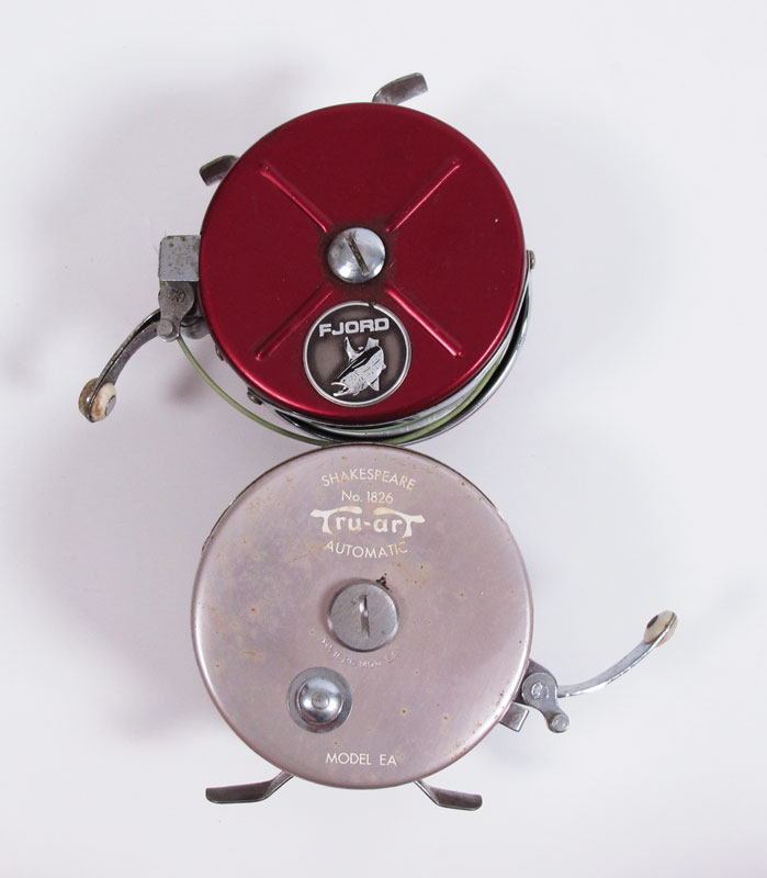 WRIGHT & MCGILL 8 1/2' GRANGER FLY ROD WITH 2 REELS: Composition shaft marked ''Wright & McGill Granger 8 1/2 ft., No. 6585''. Original metal tube 52 1/4'' l.. Sold with Shakespeare No. 1826 Tru-Art automatic reel in original box and Fjord reel.