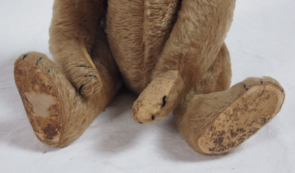 AWARD WINNING HUMP BACK TEDDY BEAR: 45th annual Federation of Doll Club's convention. Mohair jointed Teddy, worn pads on his feet. 19'' tall.