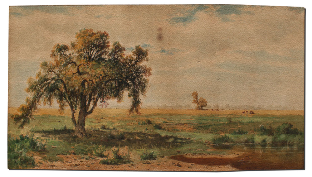 SANGSTER, Amos W., (American, 1833-1904): Pastoral Landscape With Cows Grazing, Watercolor on Paper, 13 1/2'' x 24 1/2'', signed lower left, unframed.