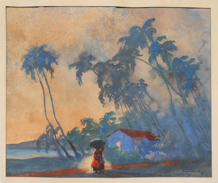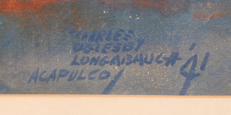 LONGABAUGH, Charles Oglesby, (American, 1885-1944): ''Acapulco'', Watercolor, sight size 17 1/2'' x 21'', signed, titled and dated '41, affixed to mat (water damage), 26'' x 29'', unframed.