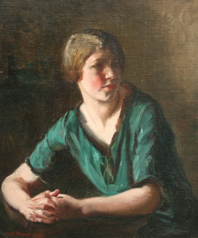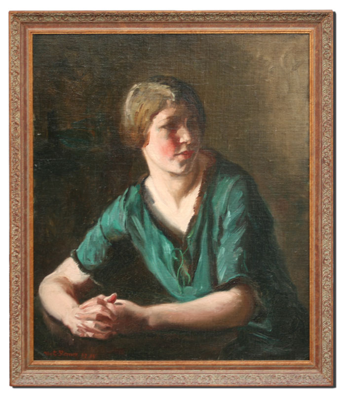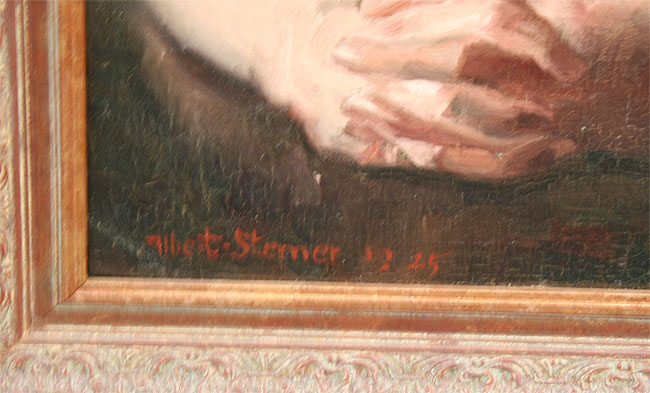 STERNER, Albert, (American, 1863-1946): Seated Young Girl with Hands Clasped, Oil/Canvas mounted on board, 28'' x 24'', signed and dated 1925, fine contemporary framing, 32'' x 27 1/2''.