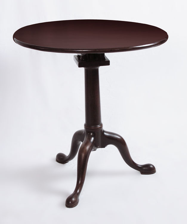 GEORGE III PERIOD MAHOGANY BIRD CAGE TILT TOP TABLE: 28 1/4'' h. x 26 3/4''.