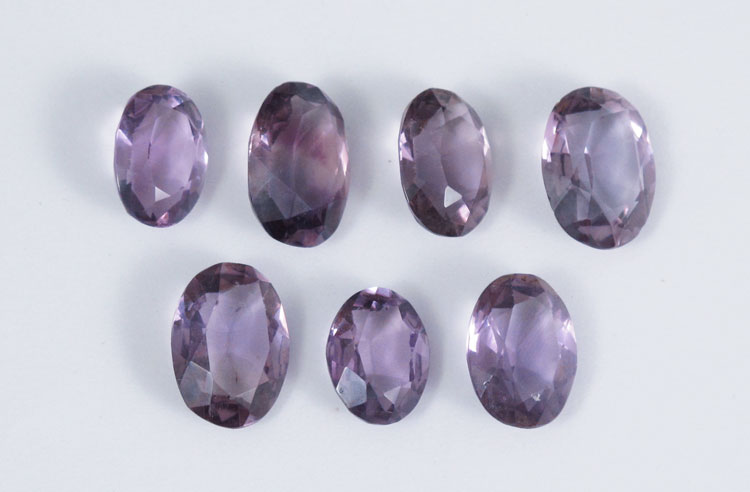 7 CUT AMETHYST STONES: Group of 7 oval mixed cut amethyst stones, total weight approx. 22.94 Ct.