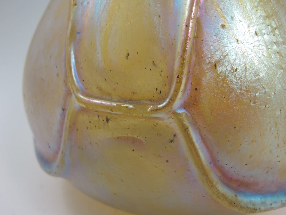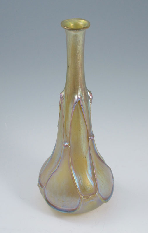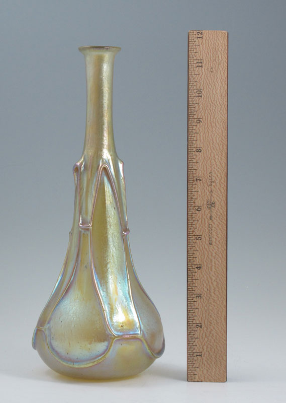 LOETZ IRIDESCENT BOTTLE NECK GLASS VASE: 11 1/2'', unsigned.