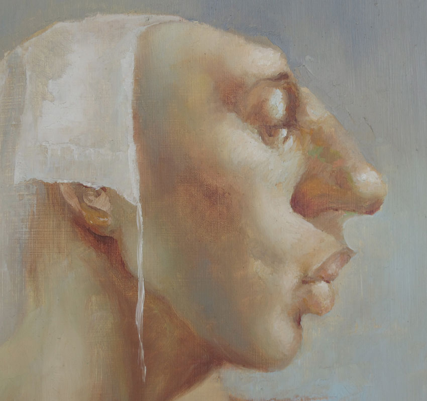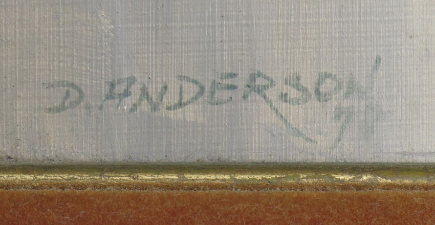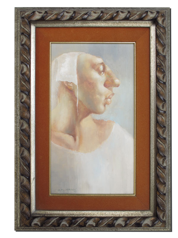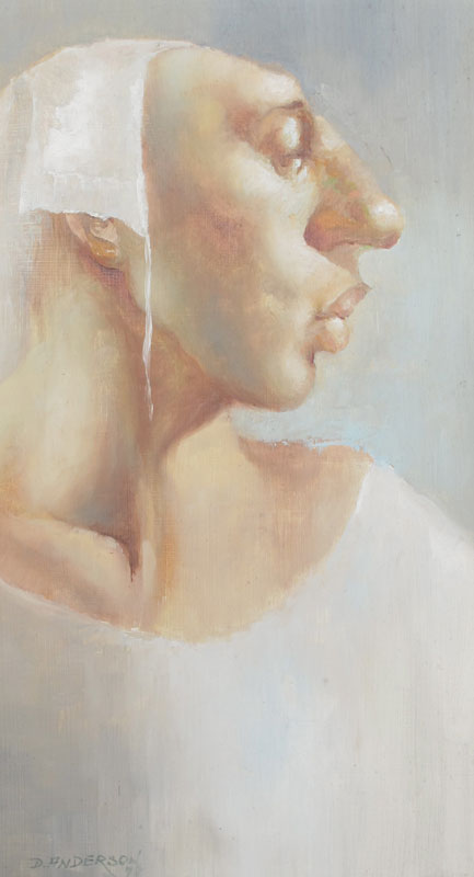 ANDERSON, David, (American, 20th C.): Profile of a Female With Long Nose, Oil/Masonite, 12'' x 7'', signed lower left and dated 1972, framed, 17 1/2'' x 12 1/2''.